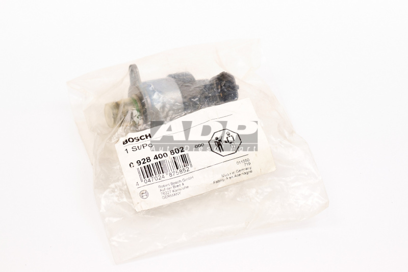 Дозировочный блок (Регулятор давления топлива) 0928400802 (производитель BOSCH) - Розничная цена 5106.25 р., Оптовая цена - по договору. Срок поставки: в наличии и под заказ. Бесплатная доставка по Москве или до транспортной компании. Автозапчасть по каталогу производителя относится к группам: Системы дизельного впрыска, Дизельные запасные части (современные системы). Основные характеристики артикула 0 928 400 802: размеры (89/49/49/) мм., вес - 0.21 кг., объем - 0.214 л.. Фото: 0928400802.