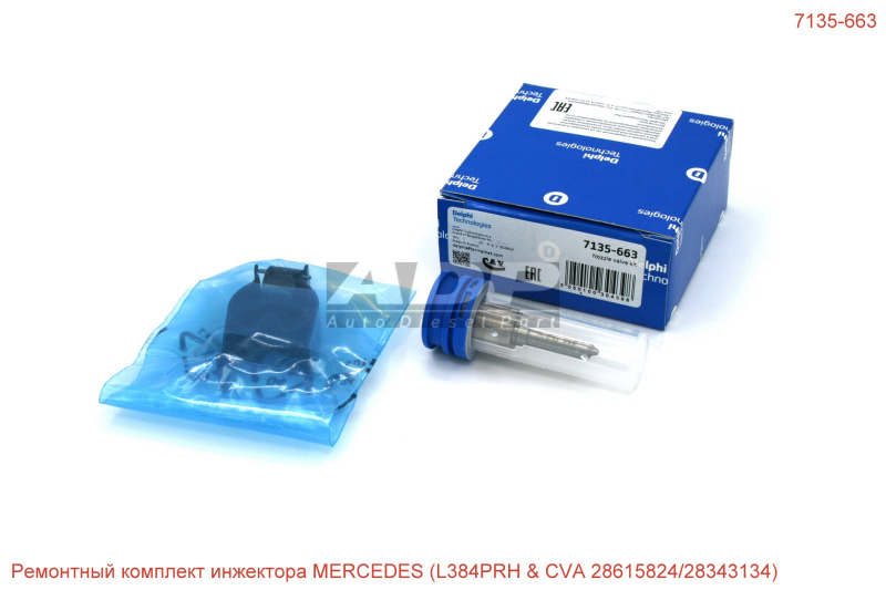 Ремкомплект инжектора MERCEDES (L384PRH & CVA 28615824/28343134) 7135-663 (производитель DELPHI) - Розничная цена 11142.50 р., Оптовая цена - по договору. Срок поставки: в наличии и под заказ. Бесплатная доставка по Москве или до транспортной компании. Автозапчасть по каталогу производителя относится к группам: Дизель - Легковой транспорт, Распылители и форсунки CR. Основные характеристики артикула 7135-663: размеры (84/83/38/) мм., вес - 0.047 кг., Фото: 7135-663.