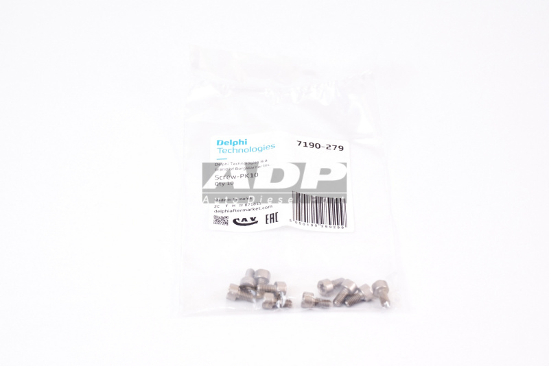 Винт (комплект 10 шт.) 7190-279 (производитель DELPHI) - Розничная цена 391.88 р., Оптовая цена - по договору. Срок поставки: в наличии и под заказ. Бесплатная доставка по Москве или до транспортной компании. Автозапчасть по каталогу производителя относится к группам: Дизель - Легковой транспорт, CR Насосы и запчасти. Основные характеристики артикула 7190-279: размеры (56/102/18/) мм., вес - 0.02 кг., Фото: 7190-279.