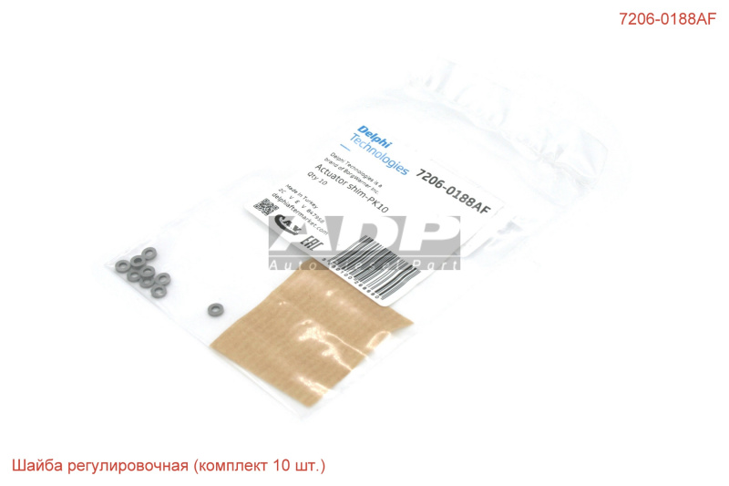 Шайба регулировочная (комплект 10 шт.) 7206-0188AF (производитель DELPHI) - Розничная цена 1280.00 р., Оптовая цена - по договору. Срок поставки: в наличии и под заказ. Бесплатная доставка по Москве или до транспортной компании. Автозапчасть по каталогу производителя относится к группам: Дизель - Тяжелый коммерческий транспорт, EUI / EUP. Основные характеристики артикула 7206-0188AF: размеры (14/96/18/) мм., вес - 0.02 кг., Фото: 7206-0188AF.