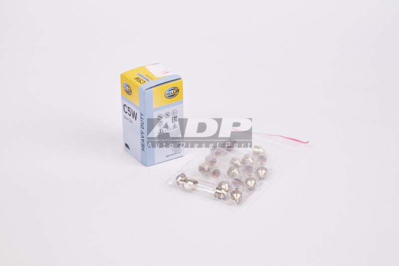 Лампа накаливания C5W 24V Heavy Duty 8GM002092-241 (производитель HELLA) - Розничная цена 70.00 р., Оптовая цена - по договору. Срок поставки: в наличии и под заказ. Бесплатная доставка по Москве или до транспортной компании. Основные характеристики артикула 8GM002092-241: Фото: 8GM002092-241.
