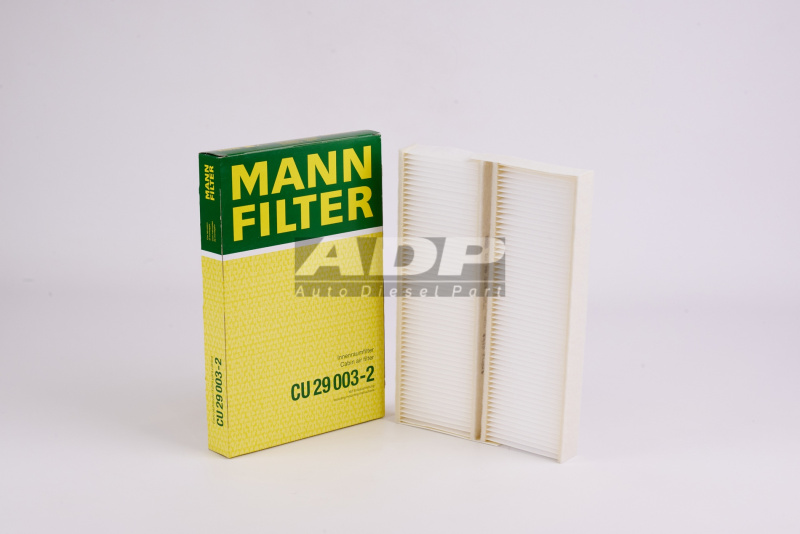 Фильтр салонный CU29003-2 (производитель MANN FILTER) - Розничная цена 1287.50 р., Оптовая цена - по договору. Срок поставки: в наличии и под заказ. Бесплатная доставка по Москве или до транспортной компании. Основные характеристики артикула CU29003-2: размеры (300/200/35/) мм., вес - 0.172 кг., Фото: CU29003-2.