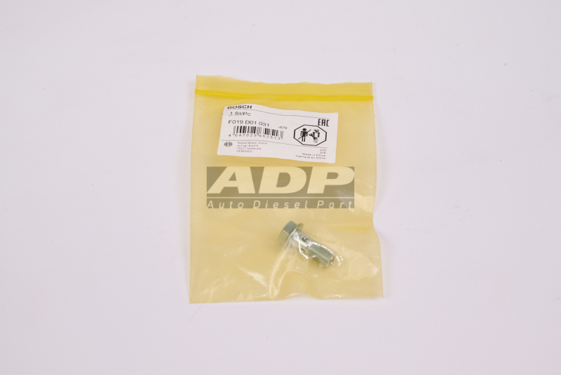 Винт F019D01031 (производитель BOSCH) - Розничная цена 456.25 р., Оптовая цена - по договору. Срок поставки: в наличии и под заказ. Бесплатная доставка по Москве или до транспортной компании. Автозапчасть по каталогу производителя относится к группам: Системы дизельного впрыска, Дизельные запасные части (современные системы). Основные характеристики артикула F 019 D01 031: размеры (119/19/19/) мм., вес - 0.02 кг., объем - 0.043 л.. Фото: F019D01031.