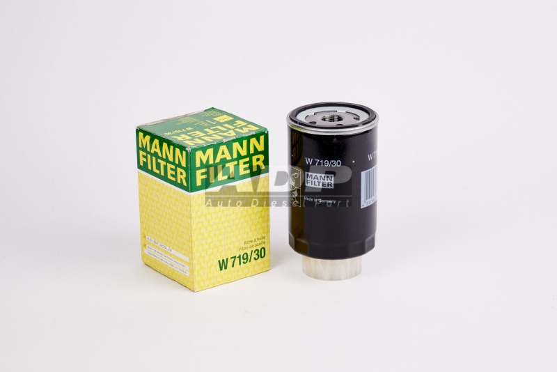 Фильтр масляный W719/30 (производитель MANN FILTER) - Розничная цена 712.50 р., Оптовая цена - по договору. Срок поставки: в наличии и под заказ. Бесплатная доставка по Москве или до транспортной компании. Основные характеристики артикула W719/30: размеры (81/81/128/) мм., вес - 0.364 кг., Фото: W719/30.